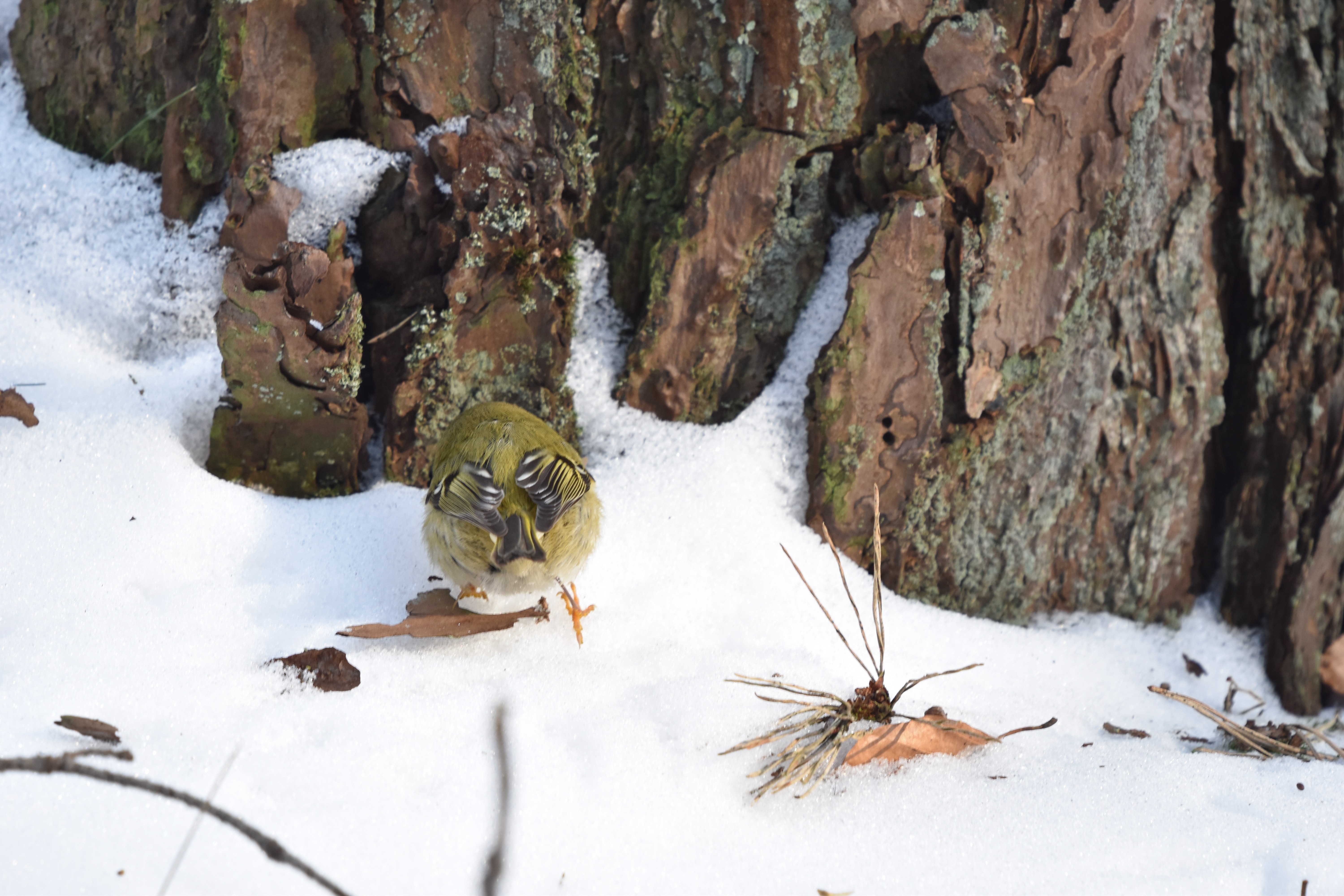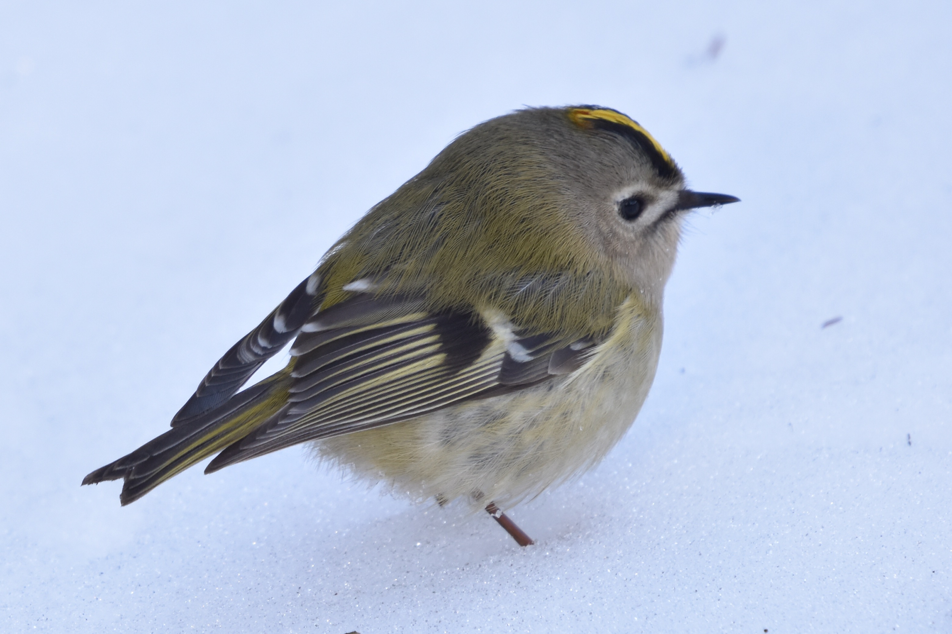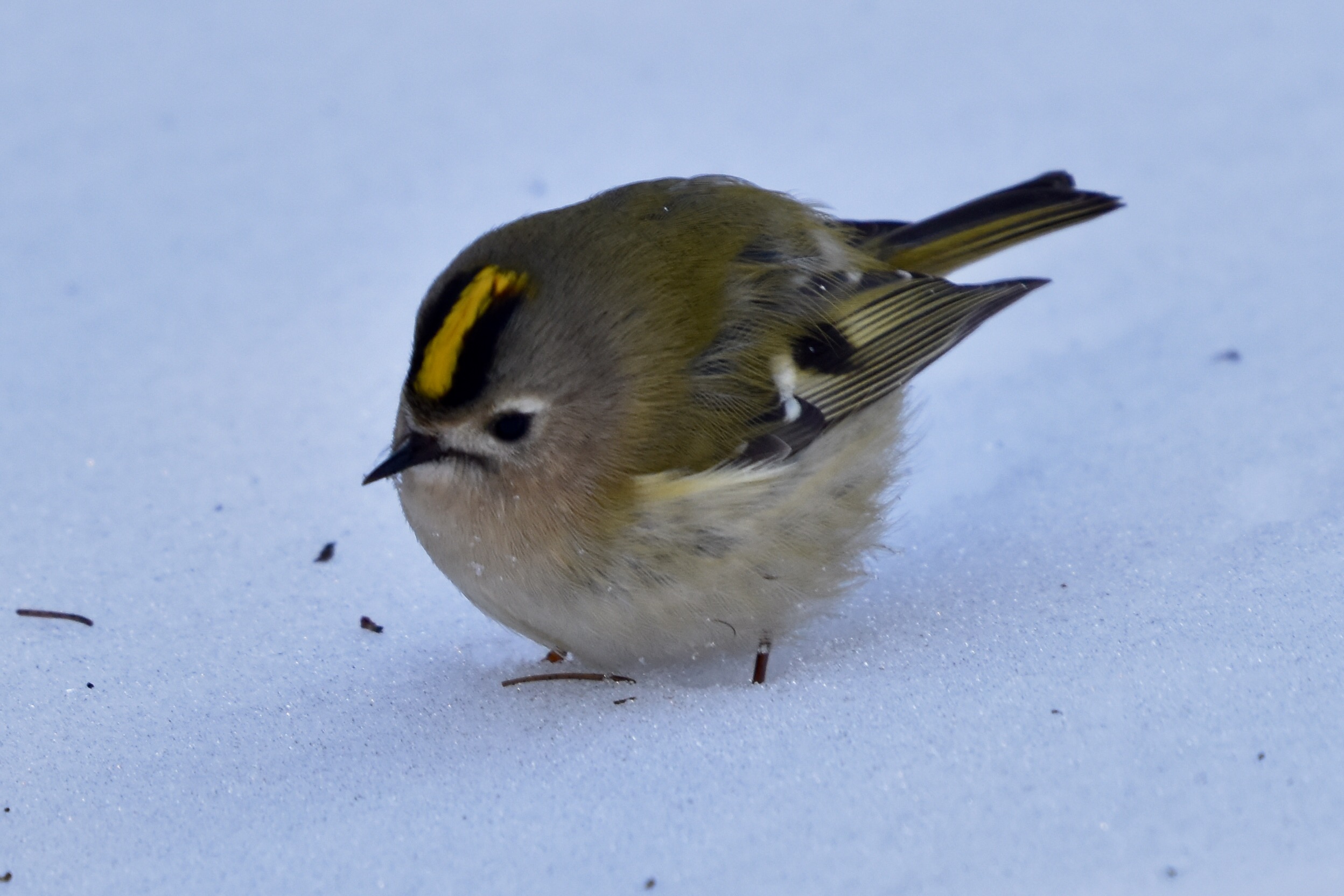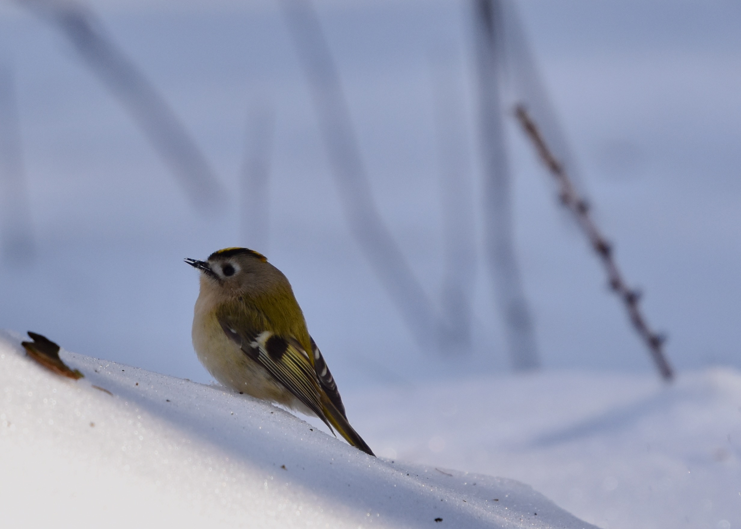 In de boswachterij Exloo heb ik eindelijk succes. Tweemaal tijdens mijn ronde geeft een op de besneeuwde bodem foeragerend Goudhaantje mij de de gelegenheid een paar honderd (!) plaatjes te schieten. Het gros is opnieuw niet om aan te zien maar gelukkig zijn er toch een paar die de toets der kritiek kunnen doorstaan.