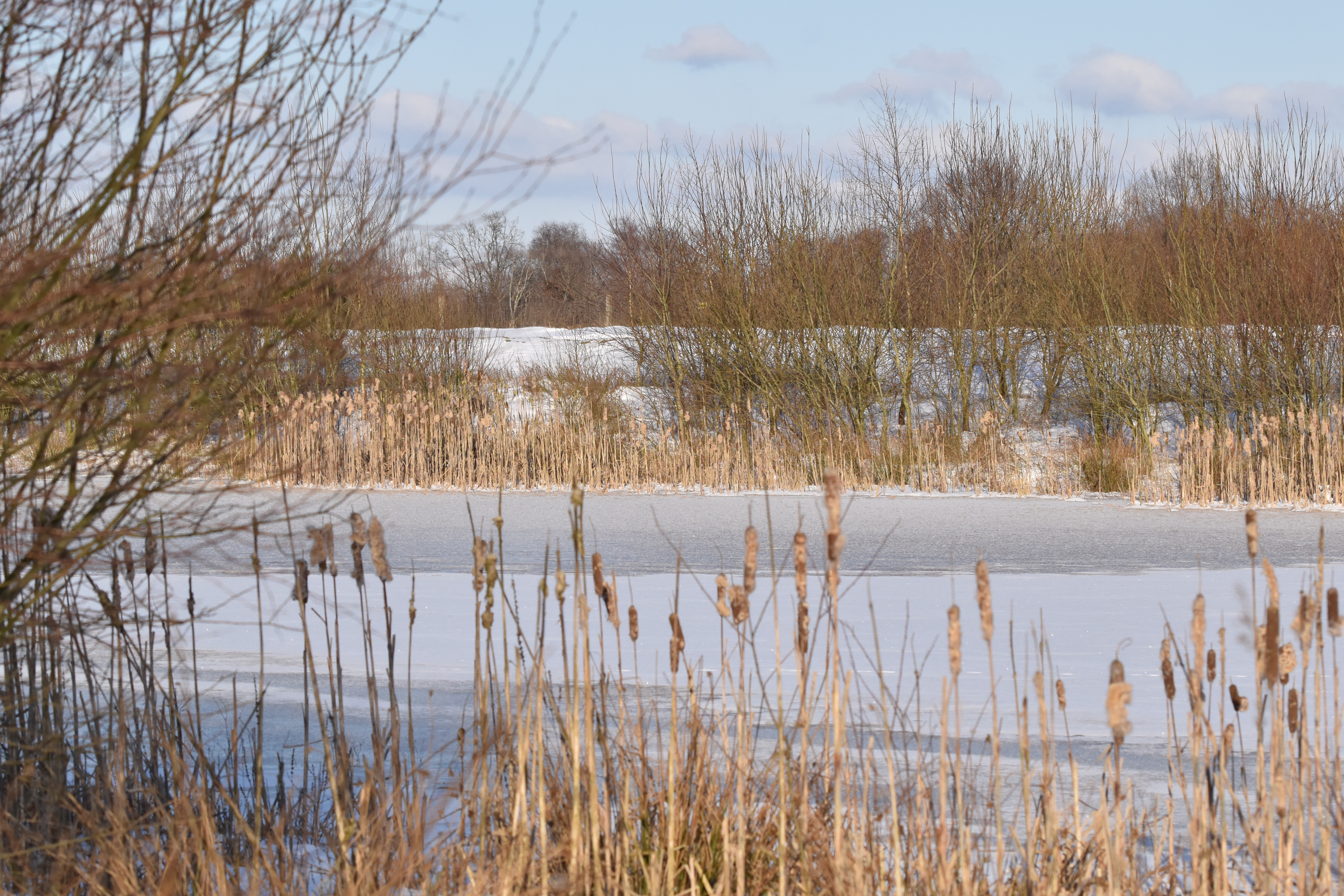 In de loop van de week klaart het op en daalt de temperatuur ver genoeg om op het water grenzend aan mijn achtertuin een ijsvloer te vormen. Het geeft mij de gelegenheid om opgeschoten riet en lisdodden deels te verwijderen. De laatste keer dat er geschaatst kon worden was op 1 maart 2018. Mijn kleinkinderen Anna, Sofie en Sil logeerden een paar dagen bij mij. Met name de twee laatstgenoemden profiteerden volop van de mogelijkheid zich verder te bekwamen in het schaatsen op natuurijs.